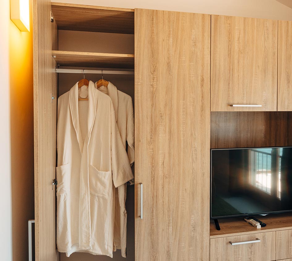 Un dressing qui utilise chaque centimètre : penderies, tiroirs, étagères, accessoires. Résultat : un rangement clair, accessible et agréable au quotidien.